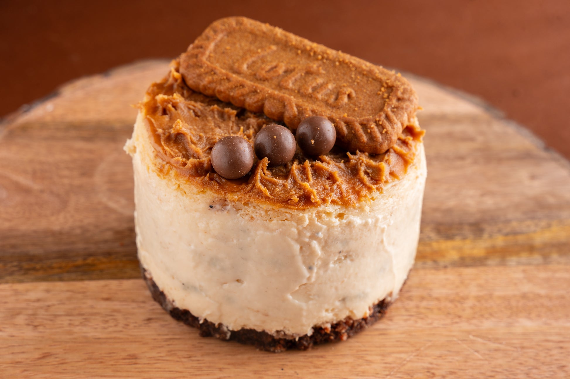 A buttery Biscoff cookie base meets silky smooth cream cheese in this irresistible creation. Our Baked Biscoff Cheesecake is generously swirled with rich Biscoff spread and crowned with a signature Biscoff biscuit and chocolate pearls — offering the perfect balance of spice, sweetness, and crunch.
